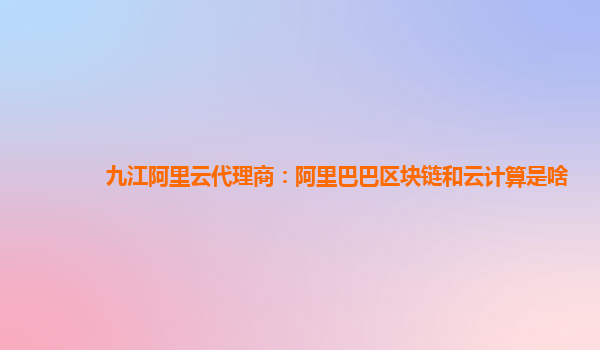 九江阿里云代理商:阿里巴巴区块链与云计算的优势与应用