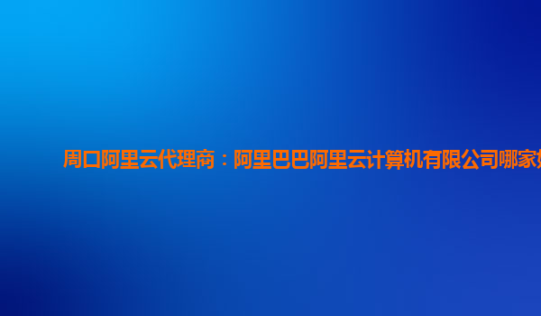 周口阿里云代理商:阿里巴巴阿里云计算机有限公司哪家好