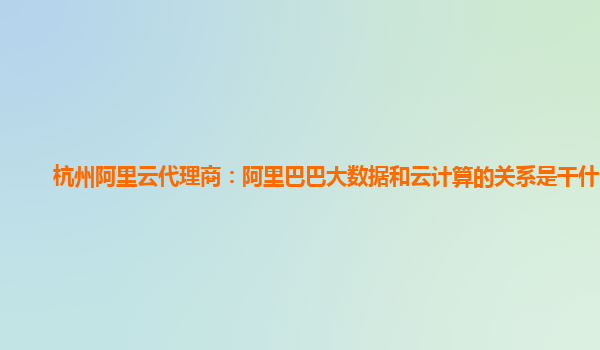 杭州阿里云代理商:阿里巴巴大数据和云计算的关系是干什么的