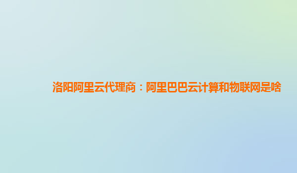洛阳阿里云代理商:阿里巴巴云计算和物联网是啥