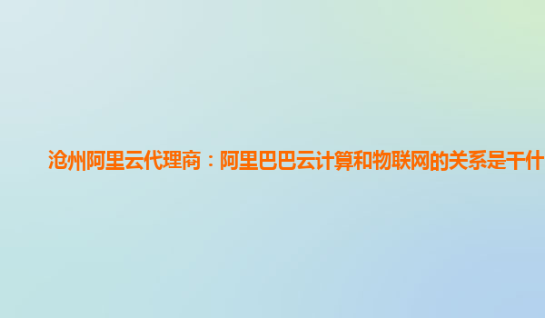 沧州阿里云代理商:阿里巴巴云计算和物联网的关系是干什么的