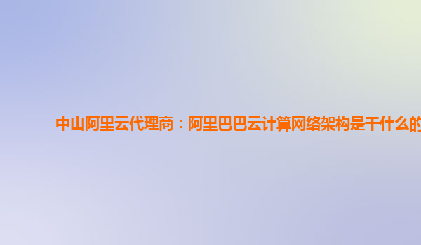中山阿里云代理商:阿里巴巴云计算网络架构是干什么的