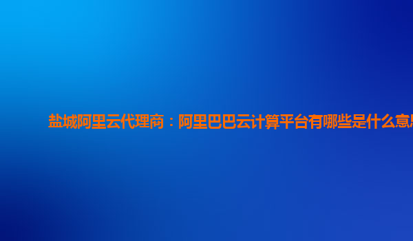 盐城阿里云代理商:阿里巴巴云计算平台的优势与好用之处