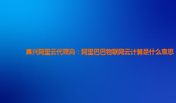 嘉兴阿里云代理商:阿里巴巴物联网云计算是什么意思