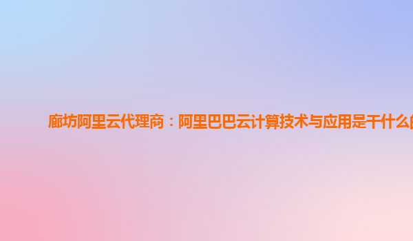 廊坊阿里云代理商:阿里巴巴云计算技术与应用是干什么的