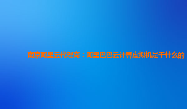 南京阿里云代理商:阿里巴巴云计算虚拟机是干什么的