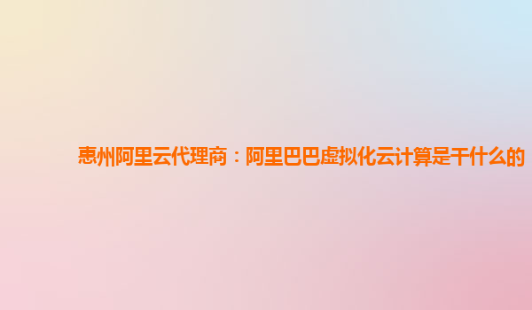 惠州阿里云代理商:阿里巴巴虚拟化云计算是干什么的