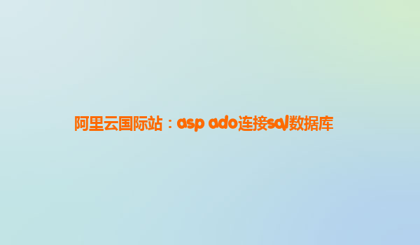 阿里云国际站:ASP ADO连接SQL数据库的优势与实现