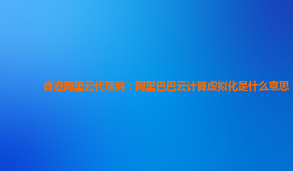 什么是阿里巴巴云计算虚拟化?