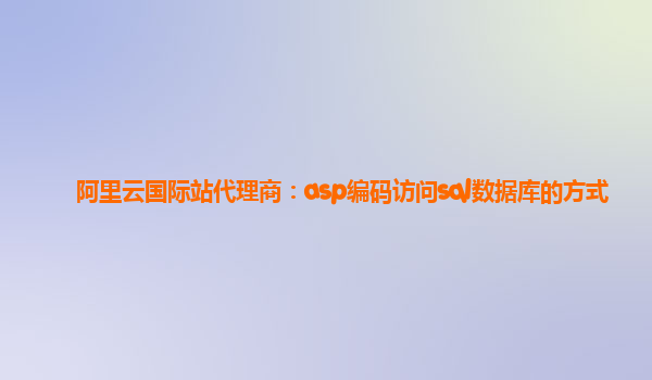 阿里云国际站代理商:ASP编码访问SQL数据库的方式