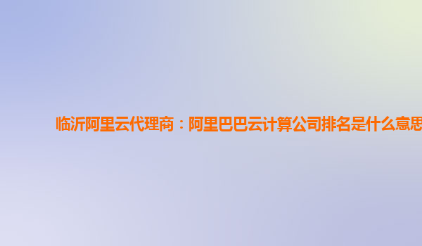 临沂阿里云代理商:阿里巴巴云计算公司排名是什么意思