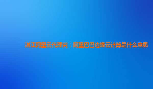 湛江阿里云代理商:阿里巴巴边缘云计算是什么意思?