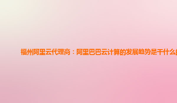 福州阿里云代理商:阿里巴巴云计算的发展趋势