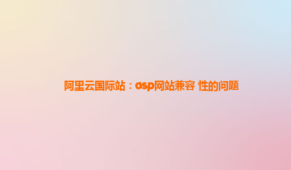 阿里云国际站:ASP网站兼容性的问题及解决方案