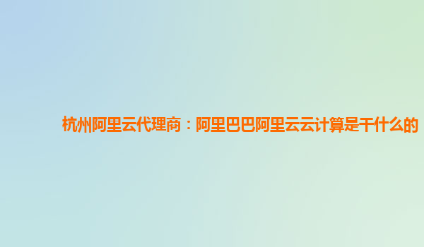杭州阿里云代理商:阿里巴巴阿里云云计算是干什么的