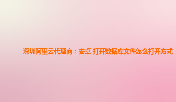 深圳阿里云代理商:安卓打开数据库文件怎么打开方式