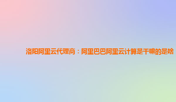 洛阳阿里云代理商:阿里巴巴阿里云计算是干嘛的?
