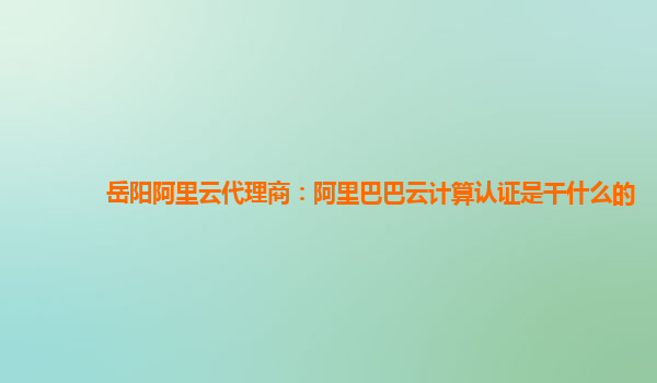 岳阳阿里云代理商:阿里巴巴云计算认证是干什么的