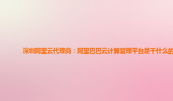 深圳阿里云代理商:阿里巴巴云计算管理平台是干什么的
