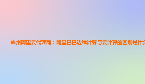 惠州阿里云代理商:阿里巴巴边缘计算与云计算的区别