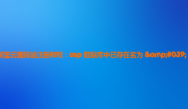 阿里云是阿里巴巴集团推出的云计算平台,致力于为全球用户提供高效、安全、可靠的云计算服务。随着互联网技术的发展,云计算已经成为现代企业和开发者不可或缺的工具。本文将详细介绍如何在阿里云国际站上注册账户,并解决数据库中常见的错误,如“ASP数据库中已存在名为‘”的报错问题。