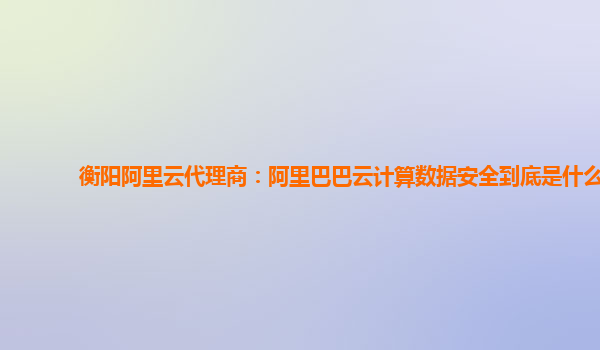 衡阳阿里云代理商:阿里巴巴云计算数据安全到底是什么?