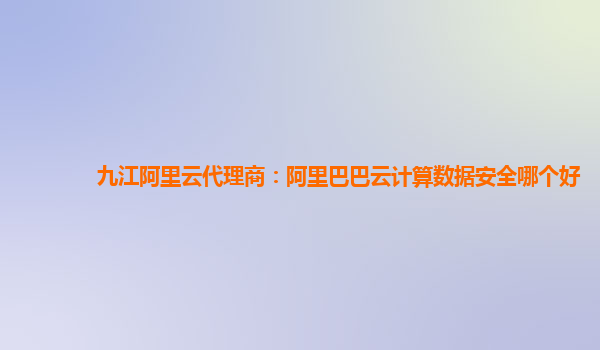 九江阿里云代理商:阿里巴巴云计算数据安全哪个好