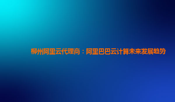 柳州阿里云代理商:阿里巴巴云计算未来发展趋势