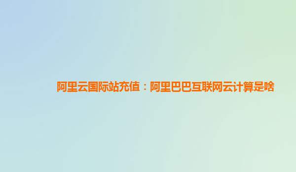 阿里云国际站充值:让全球用户轻松享受互联网云计算服务
