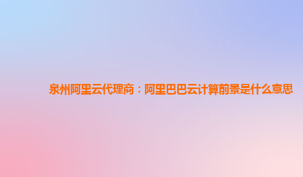 泉州阿里云代理商:阿里巴巴云计算前景及优势分析