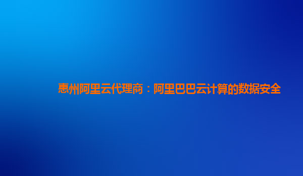 惠州阿里云代理商:阿里巴巴云计算的数据安全