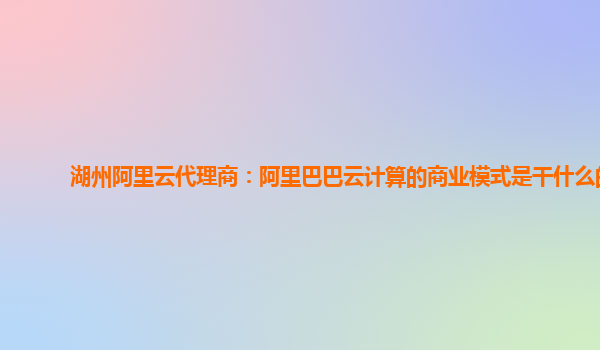 湖州阿里云代理商:阿里巴巴云计算的商业模式分析