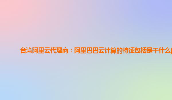 台湾阿里云代理商:阿里巴巴云计算的特征及其优势