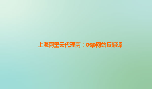 上海阿里云代理商与ASP网站反编译的优势