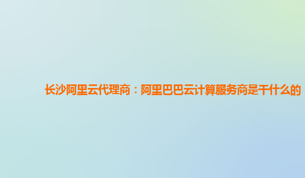 长沙阿里云代理商:阿里巴巴云计算服务商是干什么的