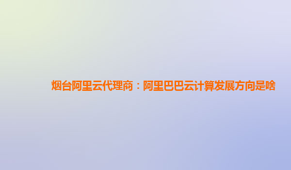 烟台阿里云代理商:阿里巴巴云计算发展方向是啥