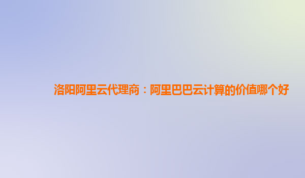洛阳阿里云代理商:阿里巴巴云计算的价值哪个好