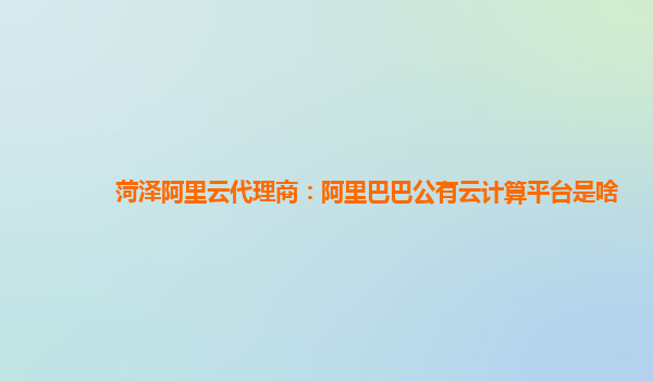 菏泽阿里云代理商:阿里巴巴公有云计算平台是啥