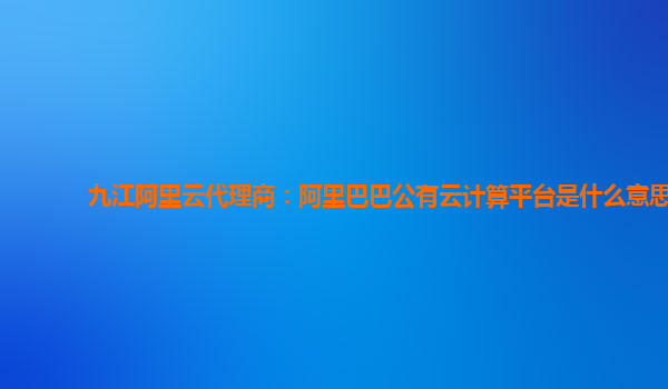 九江阿里云代理商:阿里巴巴公有云计算平台是什么意思?