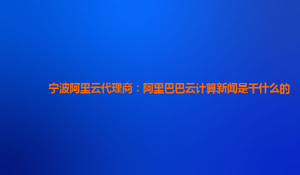 宁波阿里云代理商:阿里巴巴云计算新闻是干什么的