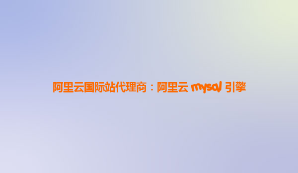 阿里云国际站代理商:阿里云 MySQL 引擎