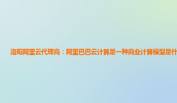 洛阳阿里云代理商:阿里巴巴云计算是一种商业计算模型是什么意思
