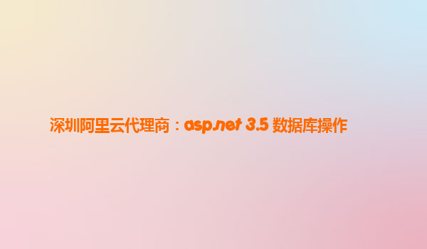 深圳阿里云代理商助力ASP.NET 3.5数据库操作
