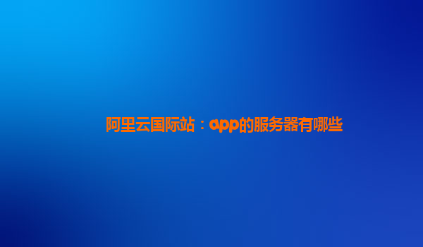 阿里云国际站:全面解析App服务器解决方案