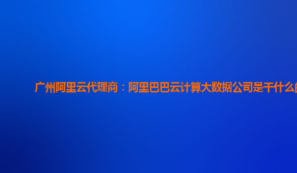 广州阿里云代理商:阿里巴巴云计算大数据公司是干什么的