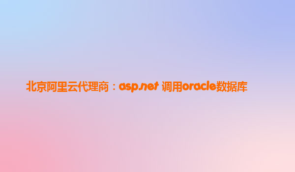 北京阿里云代理商:ASP.NET 调用 Oracle 数据库