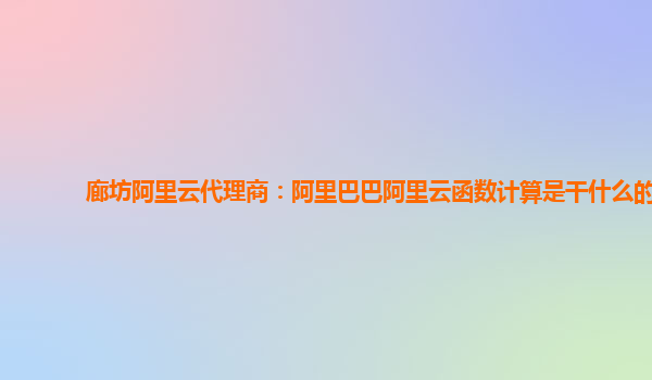 廊坊阿里云代理商:阿里巴巴阿里云函数计算是干什么的