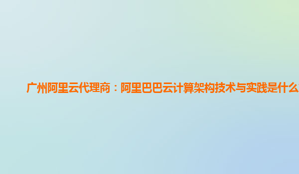 广州阿里云代理商:阿里巴巴云计算架构技术与实践