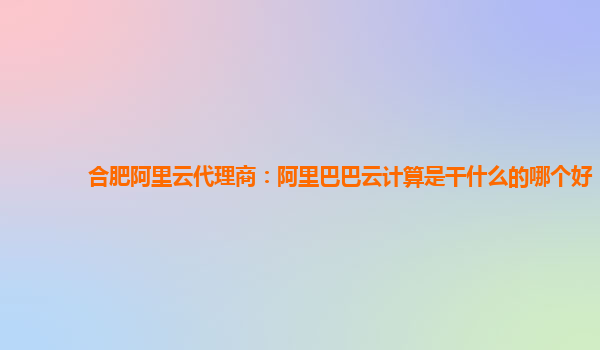 合肥阿里云代理商:阿里巴巴云计算是干什么的?哪个更好?