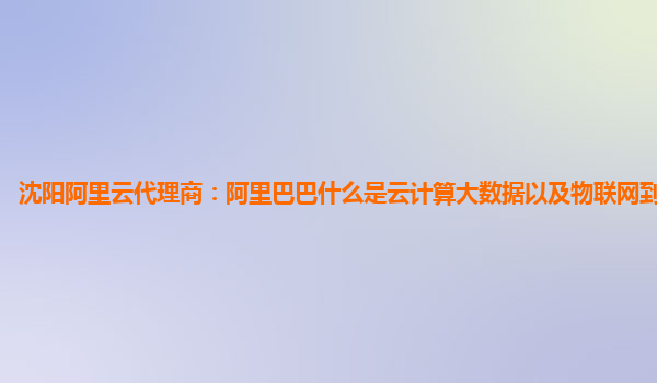 沈阳阿里云代理商:阿里巴巴什么是云计算、大数据以及物联网到底是什么